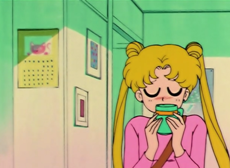 Unaware of the baddies on their way, Usa and Mako go over to Motoki’s to make that dinner they promised him, and by “they” I mean Makoto does all the cooking and Usagi sniffs Makoto’s coffee mug like a big creeper. Their plans are interrupted when Reika calls—she’s made a decision and wants to tell Motoki in person. He steps out, leaving the girls to wait for him at his apartment. So they wait. And wait. And wait.