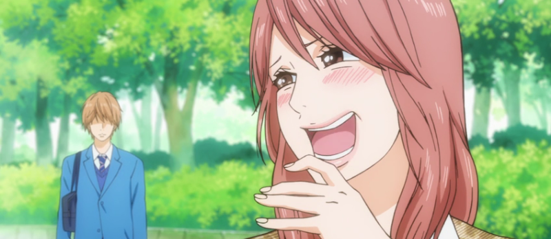 I haven’t mentioned that particular theory before because I frankly didn’t see it—I was very much in the “Best Dudes Forever” camp, as you know—but this week sure seemed to be dropping a lot of hints to the contrary, from the kissing scene to Suna glancing away and quietly announcing Takeo’s coolness to Ai’s lament about wishing she was a guy “like Suna” so she could be friends with Takeo. So now I can’t help but wonder if the creator isn’t setting us up for a reveal at some point. Ai’s line was either epic foreshadowing or queer erasure (sadly common in anime/manga focusing on hetero relationships), and given the choice between the two, I ‘spect I’d prefer the former.
