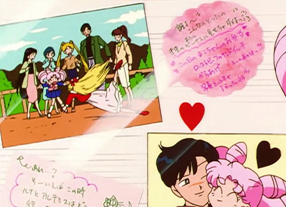 I’m not entirely sure why we needed another episode after that last one, but here we are in peace time, with Usagi and Mamoru snuggling(ish) and Chibiusa receiving a letter from the future, telling her to come home. Now she could, technically, ignore this order for as long as she wanted and still wind up back home shortly “after” her mother sent the letter because, um, muthafuggin time travel, but for some reason everyone thinks she needs to listen to it right away, and encourage her to go see her parents again.