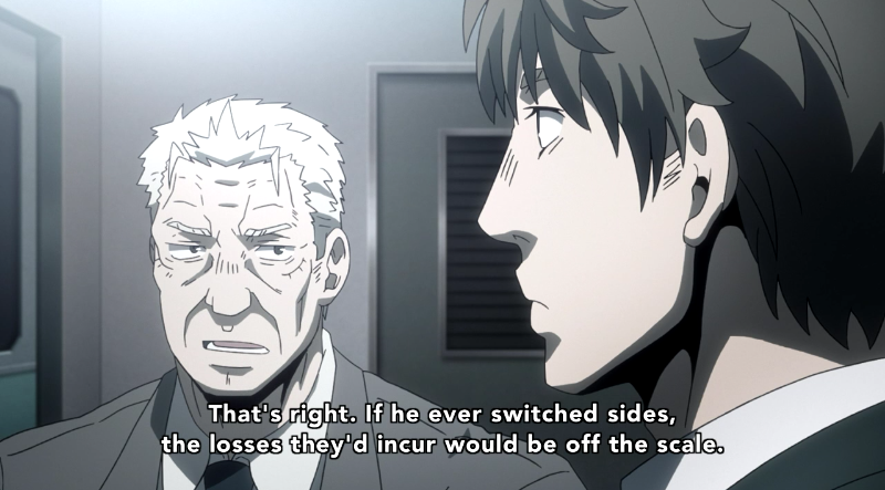 We’re back to political world-building and character study this week, a decision that’s worked in the show’s favor in the past and mostly does now. I suspect GANGSTA‘s pendulum swings from thoughtful drama to bloody action is going to continue to be a bit of a sore point for me, as the wider world of Ergastulum fills with increasingly archetypal and over-the-top characters (hello, Eyepatch Girl) who feel absurdly out of place in a series that seemed interested in maintaining a kind of gritty pseudo-realism for its first seven episodes. But that’s where we are, so I’ll try to get used to it.