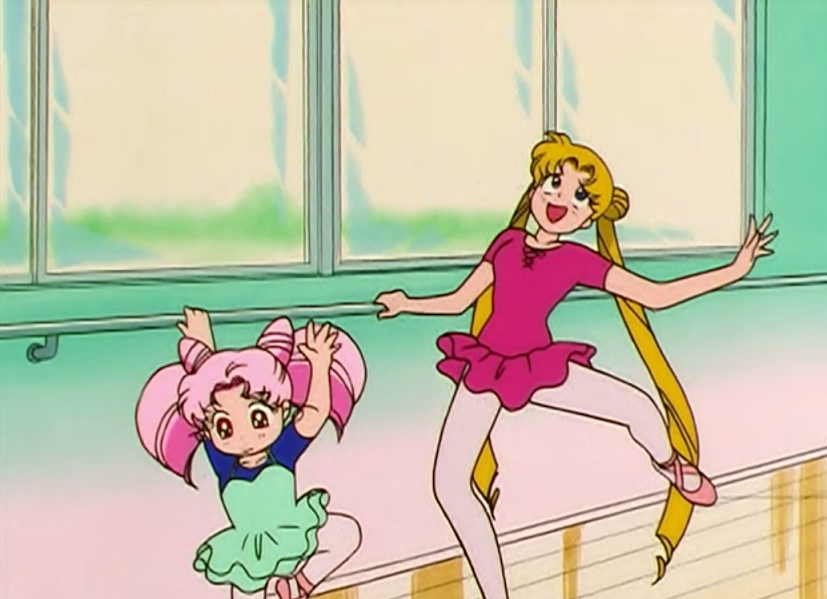 And attacks! Usagi was heading to the theater for her own “rehearsal,” so she and Chibiusa intervene in time to meet our latest Lemures, Kurumiwario the Nutcracker. He promises to turn these two into prima ballerinas, so Fish leaves him to it, whereupon he… huh. He does in fact train the Moons to be prima ballerinas! Sometimes I forget the circus thing isn’t just a cool aesthetic—these guys are actual performers and take their jobs SERIOUSLY, dangit.