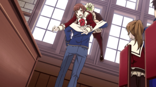 One of the tricks of Dance with Devils is how it begins by looking very much like Every Other Supernatural Harem Series, particularly regarding its protagonist’s personality—or rather, the lack thereof. Like most heroines in harem stories (be they dating sims or otherwise), Ritsuka functions as a loosely characterized stand-in for the audience member. In the early going, she’s ill-defined, blank-faced, and passive, getting bounced from one boy or danger to the next and largely relying on others (including a female best friend, for what that’s worth) to save her.