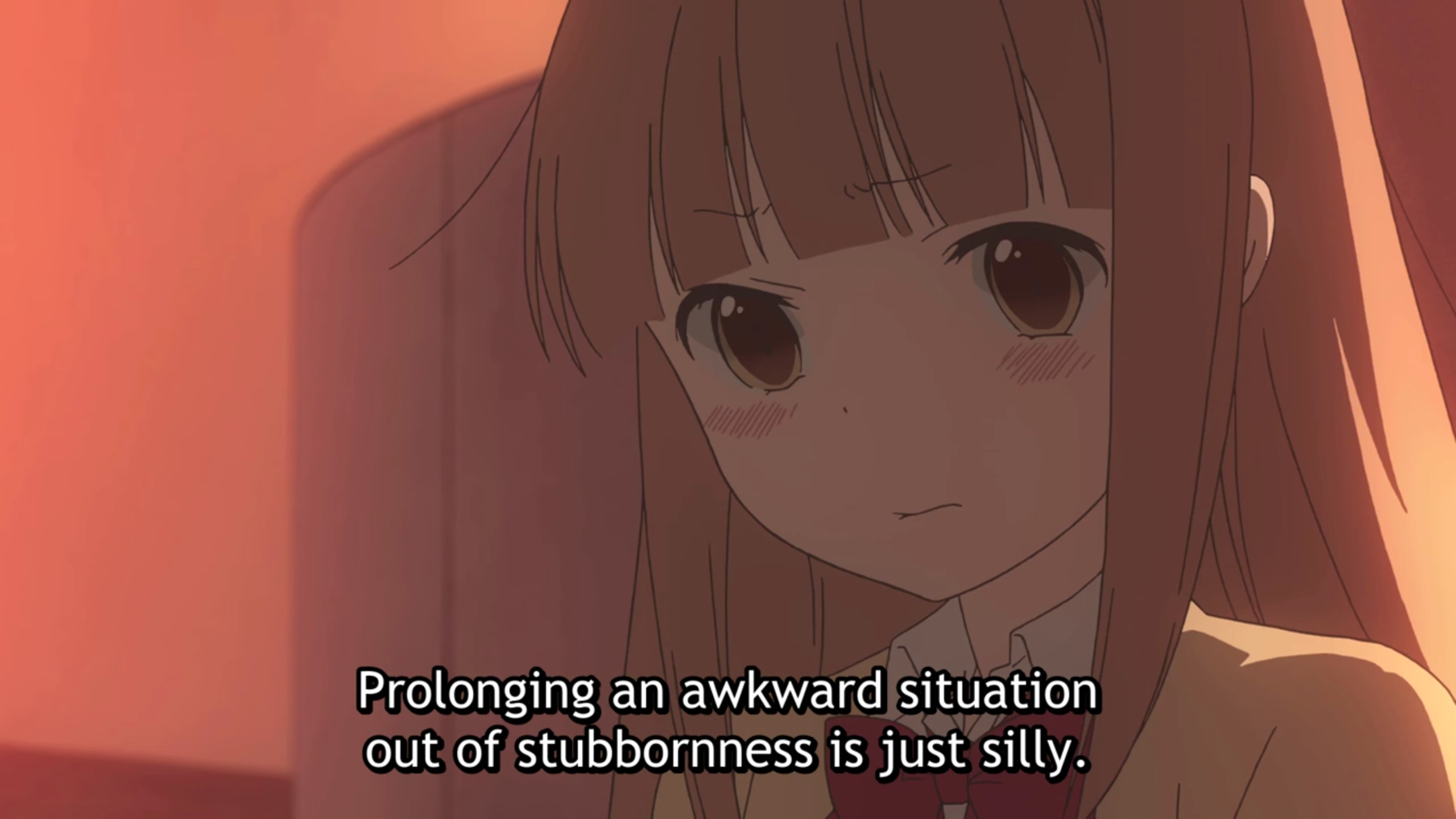 This tension between delusion and truth comes up constantly in the other characters’ conflicts as well, and almost always leads to (light, silly) complications, such as tiny, hard-working Miyano’s fight to be “mature” and listless. It’s not that Miyano shouldn’t be allowed to change if she wants to, but that she rejects qualities about herself and tries to attach new ones as if it were as easy as changing hats. Self-change is a constant, steady process that requires acknowledging one’s current nature and then, rather than beating it with a hammer, gradually bending it into the desired shape.